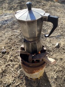 火をおこして、ご飯を作り、コーヒーを淹れる。